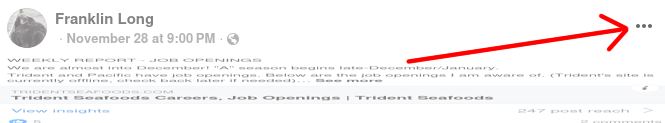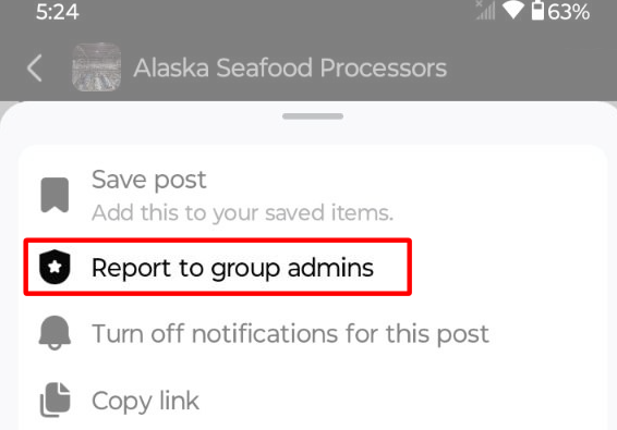 Step 2: From the pop-up menu, click "Report post to group admins"