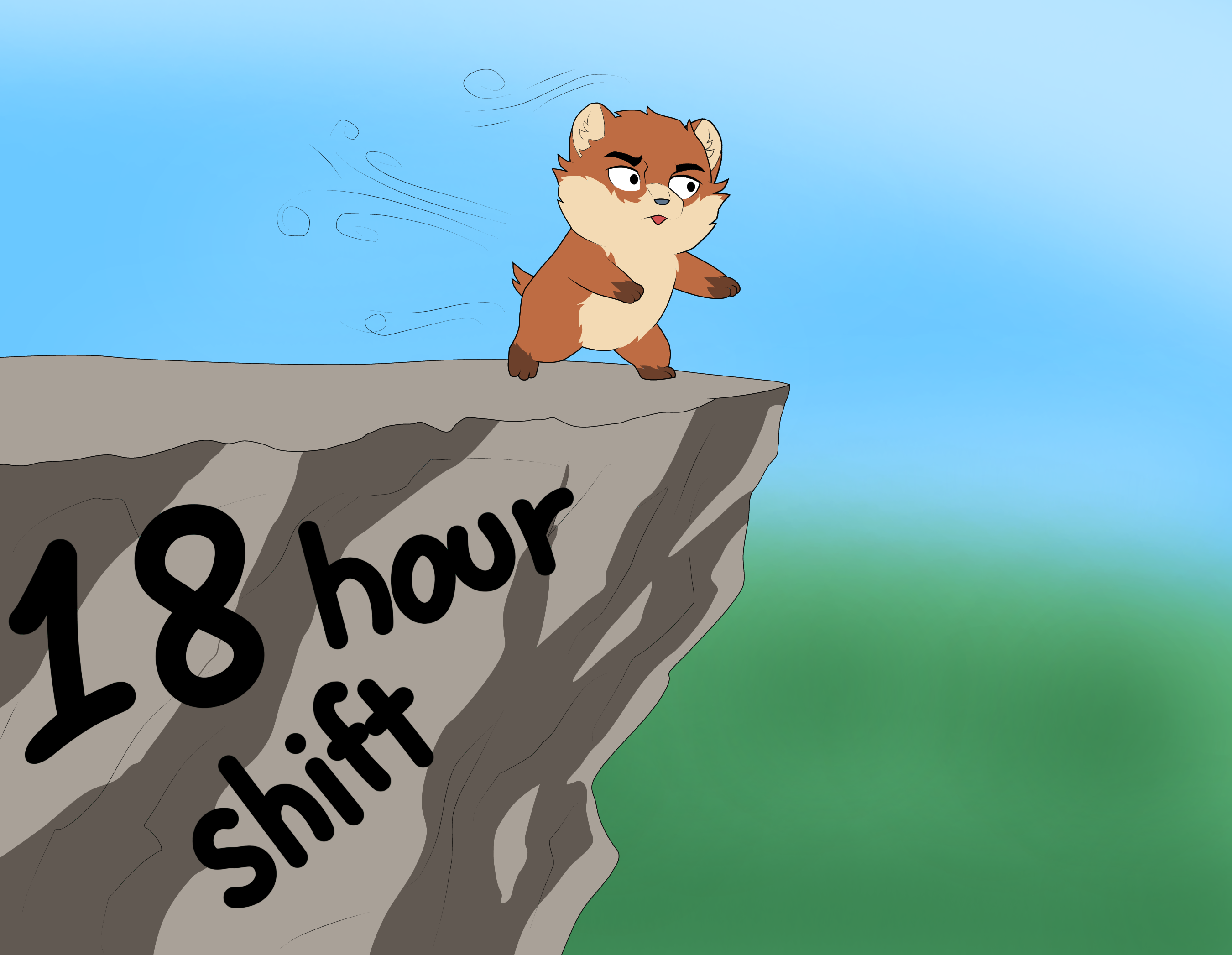 With a main shift pattern, if you are scheduled from 7am to midnight, that is a 17-hour shift, but if you have two one-hour meal breaks, only 15 of those hours are on the clock. After work, you have only 7 hours to shower, sleep, wake up, and get ready before your next shift.