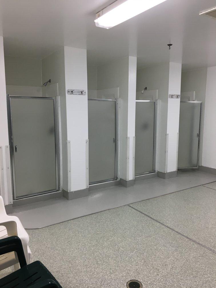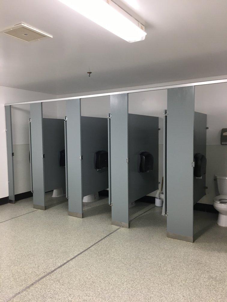 Communal bathrooms are shared among employees from multiple rooms.
