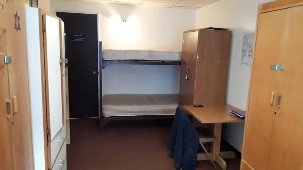 Bunk beds are common in dormitory-style rooms, though ladders for the top bunks aren't always provided. If you require special accommodations, such as being unable to access the top bunk due to a back problem, you should speak with the housing manager. Alternatively, you could ask a roommate to switch bunks.