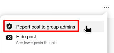 Step 2: From the pop-up menu, click "Report post to group admins"